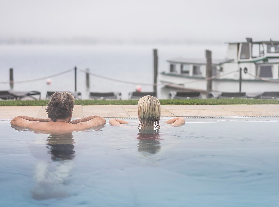 What do most guests wish for when returning from a hike, bike tour, or a full day of adventure? To retreat for an hour or two into our cosy relaxation area. We are happy to heat the sauna for you and provide infusions and bathrobes. From December 2025, you can enjoy our renovated and expanded sauna and relaxation area. The idyllic village of Bad Wiessee, where our wellness hotel at Tegernsee is located, is perfect for a leisurely and relaxing stay.